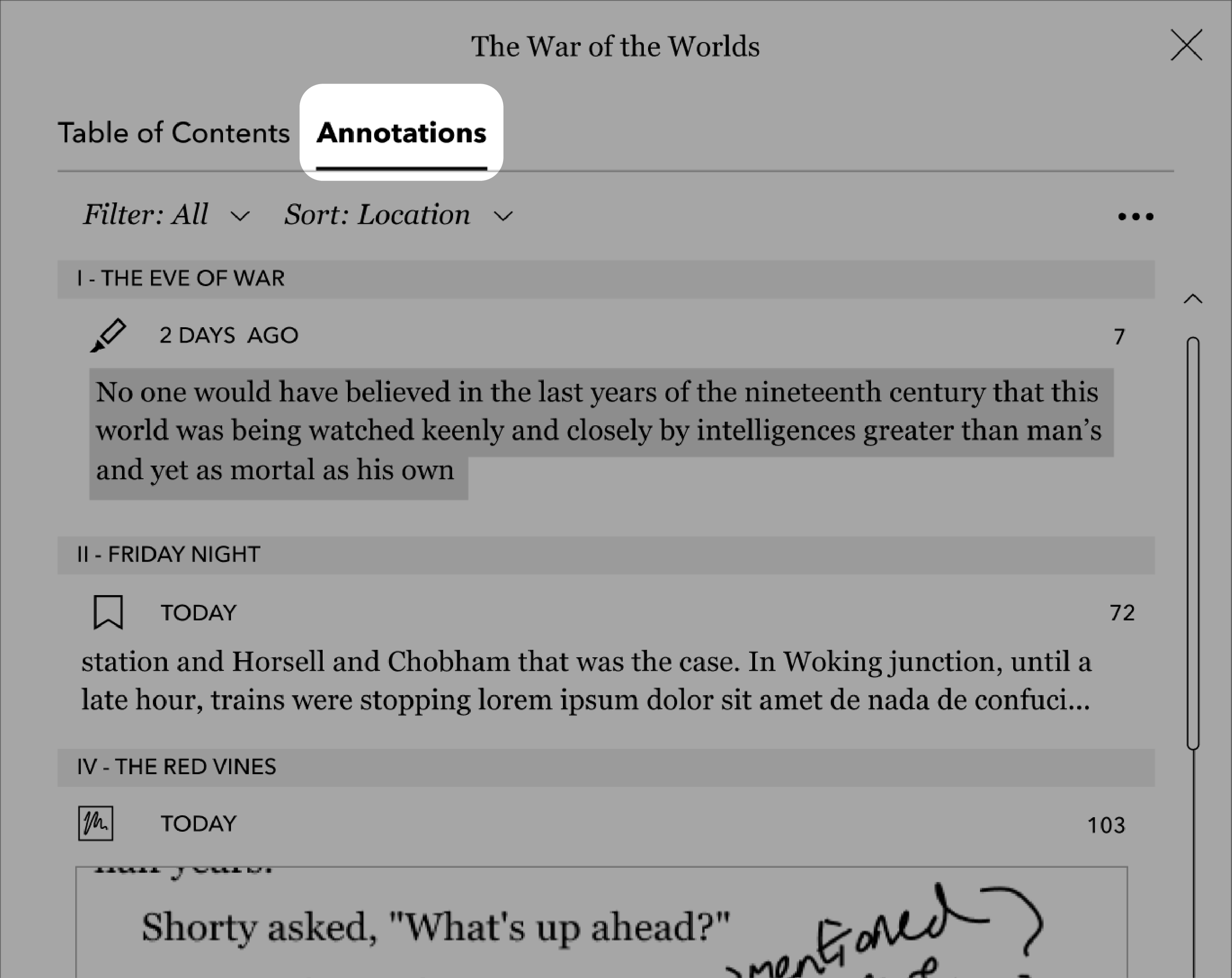 arrows on the side of the screen, or drag the scroll bar to scroll through the annotations page.