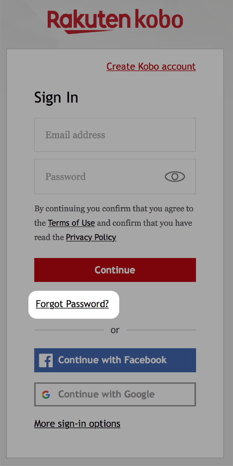 Enter your email address that you used to create a Kobo account.