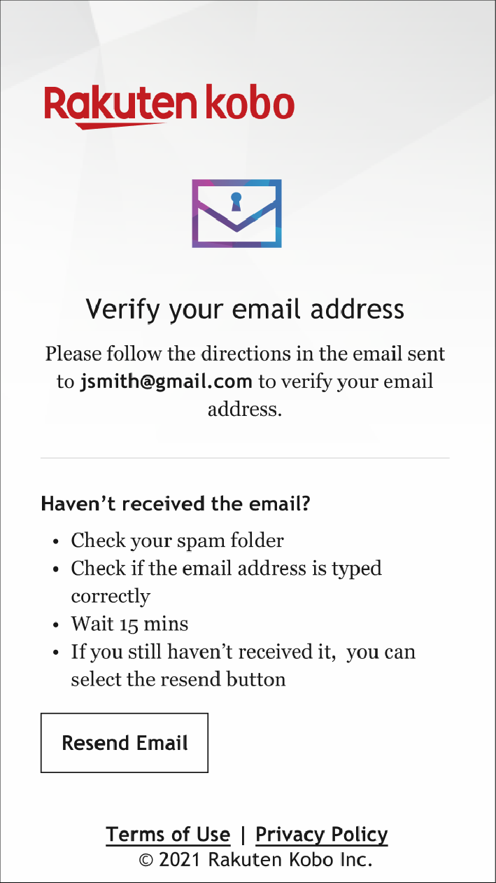 - Haz clic en Volver a enviar correo electrónico y busca un correo de Rakuten Kobo