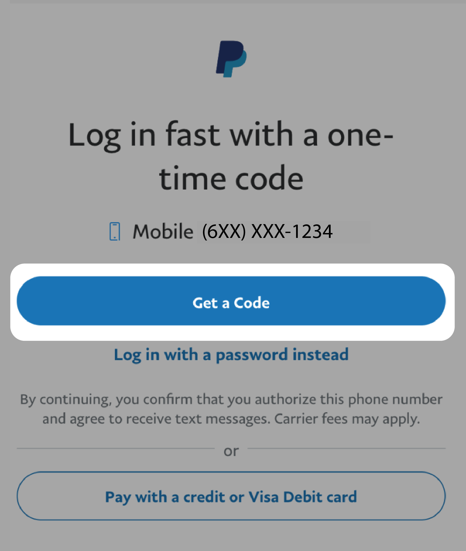Tarkista PayPal-tiliisi liitetty matkapuhelin ja etsi PayPalilta tekstiviesti, joka sisältää numerokoodin. Syötä koodi tyhjiin kenttiin.