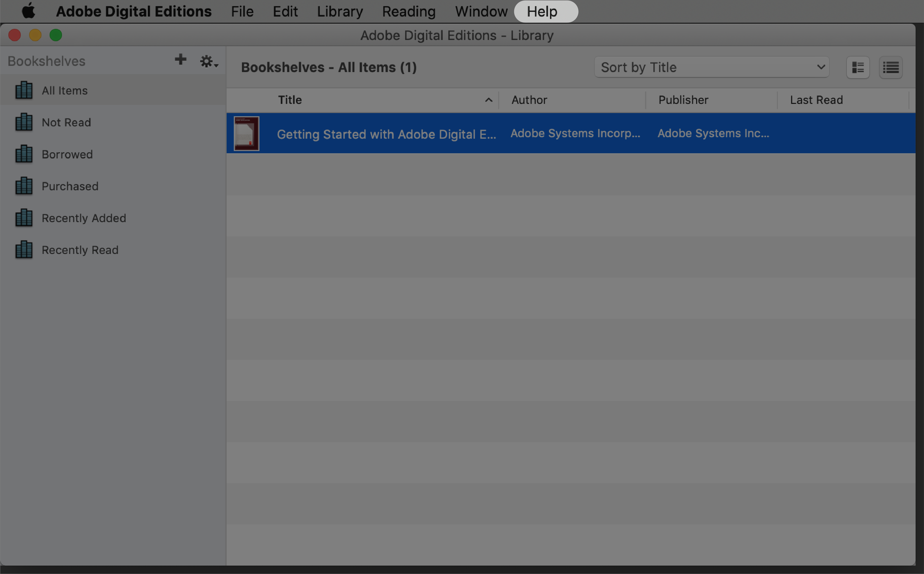 - Kun Adobe Digital Editions on auki, napsauta Ohje ruudun yläosassa.