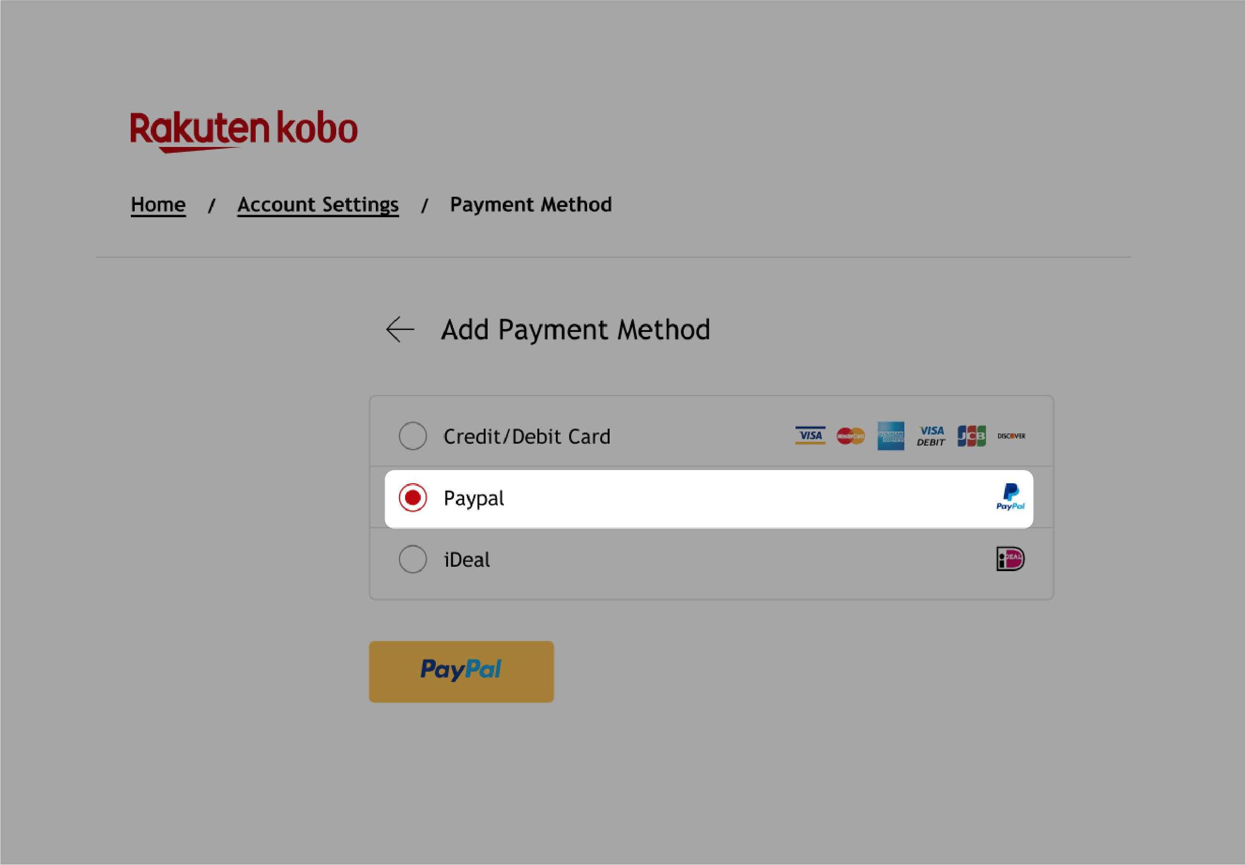 Vous pouvez payer non seulement par carte de crédit, mais aussi par PayPal. Suivez les étapes ci-dessous pour configurer PayPal avec votre compte Rakuten Kobo.