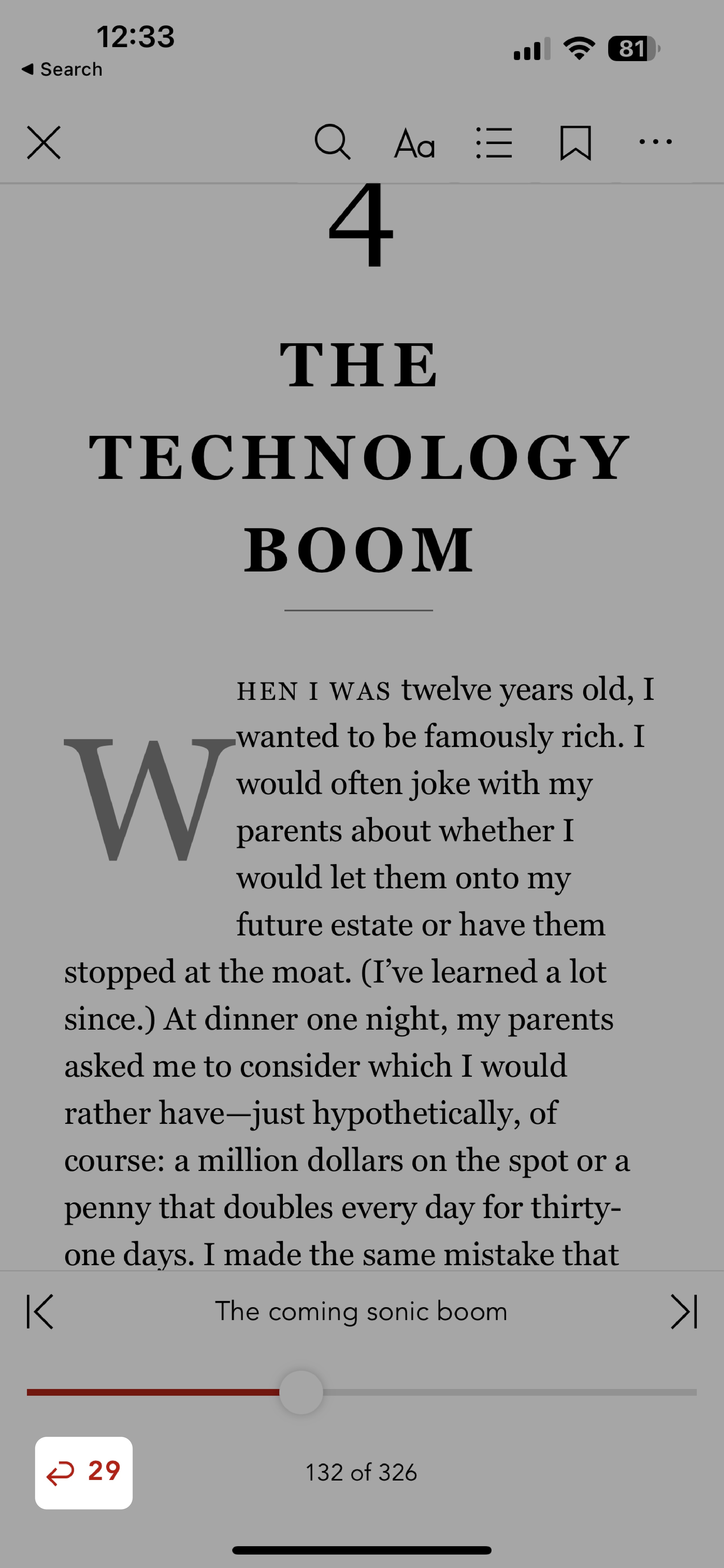 Als je naar een hoofdstuk gaat of naar een andere pagina gaat, kun je altijd teruggaan naar de vorige pagina. Tik hiervoor op het pijlpictogram linksonder in het scherm. Het