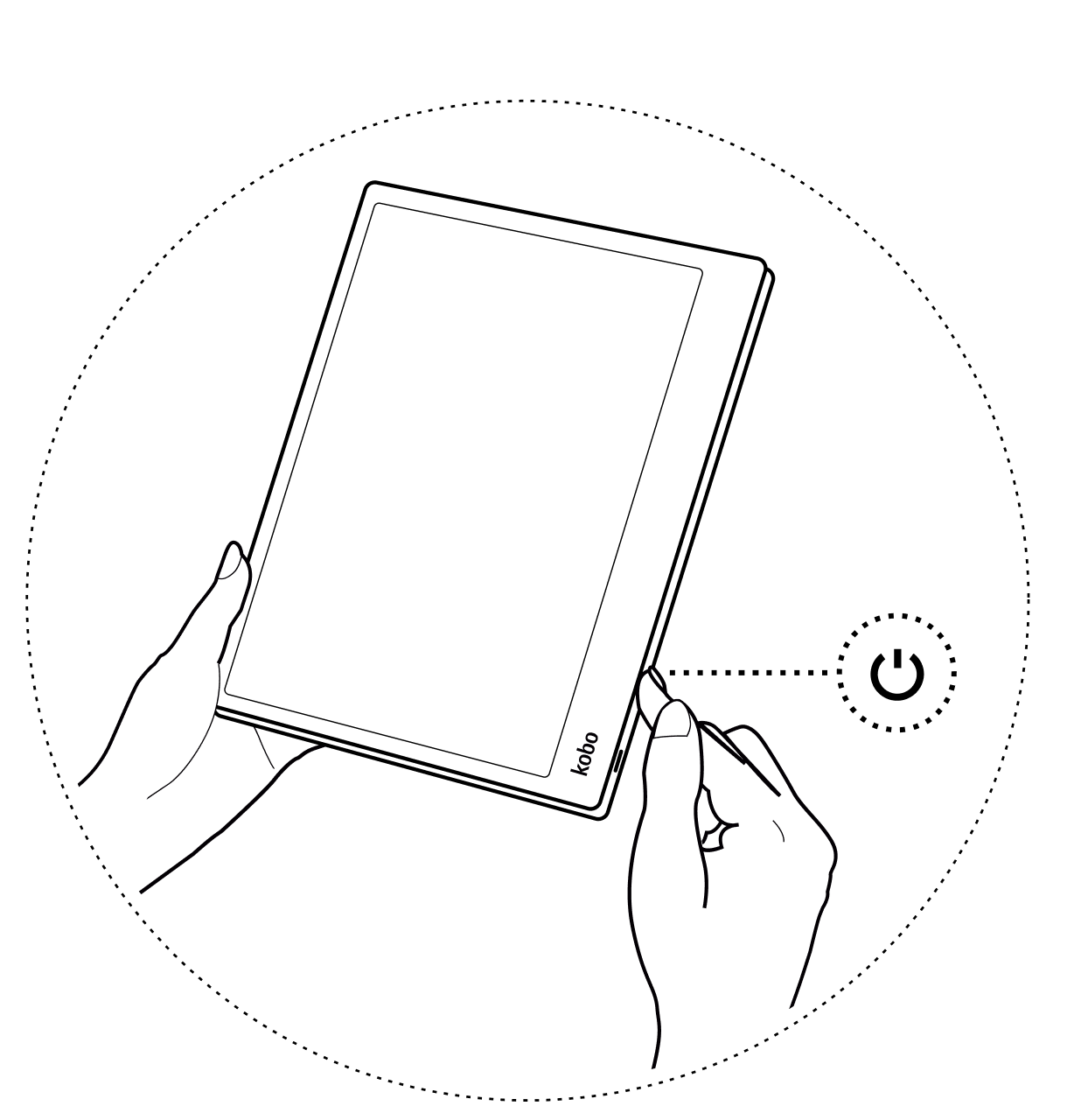 Opmerking: om je eReader uit te schakelen, houd je de aan/uit-knop ingedrukt tot je het bericht 'Uitgeschakeld' op het scherm ziet.