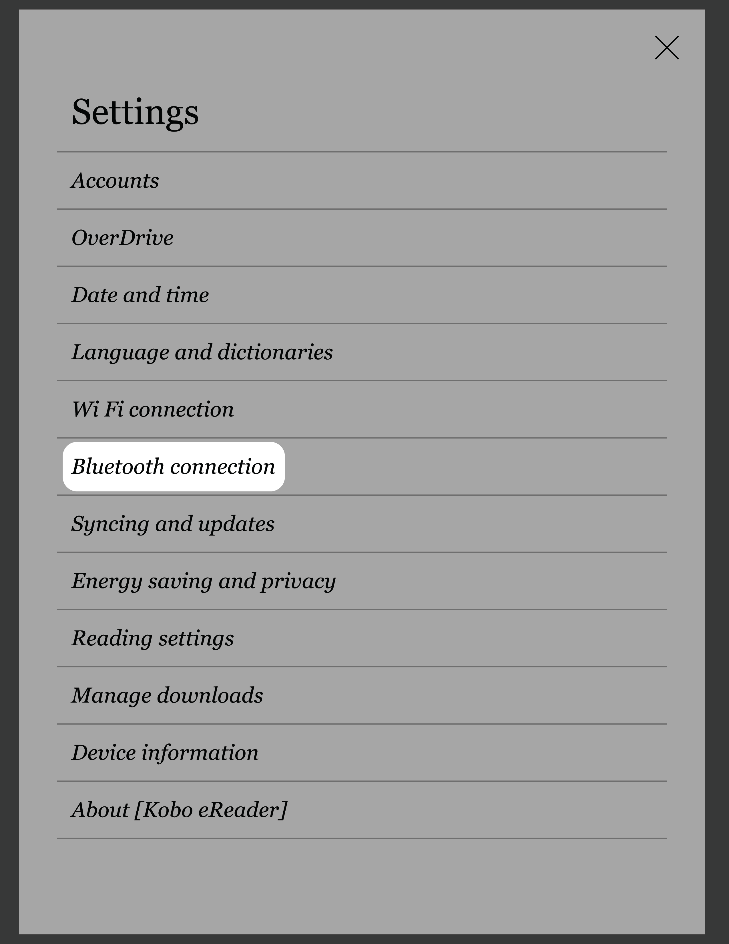 - Open het menu voor bluetooth-verbindingen op je eReader: