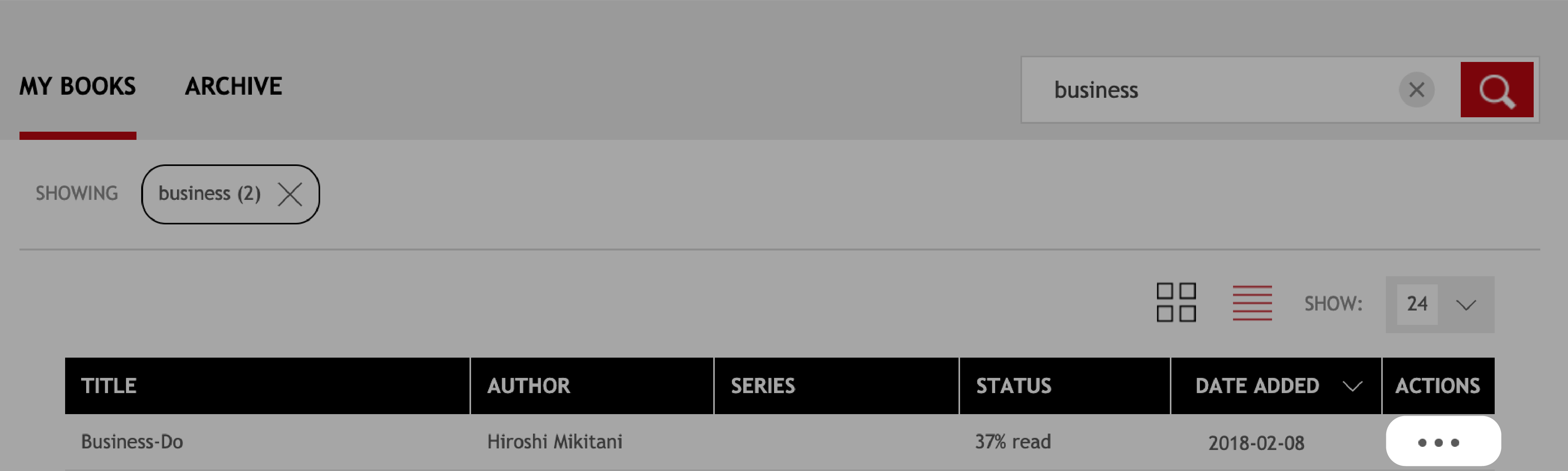 Handlinger-ikonet ved siden av boktittelen eller bokomslaget: