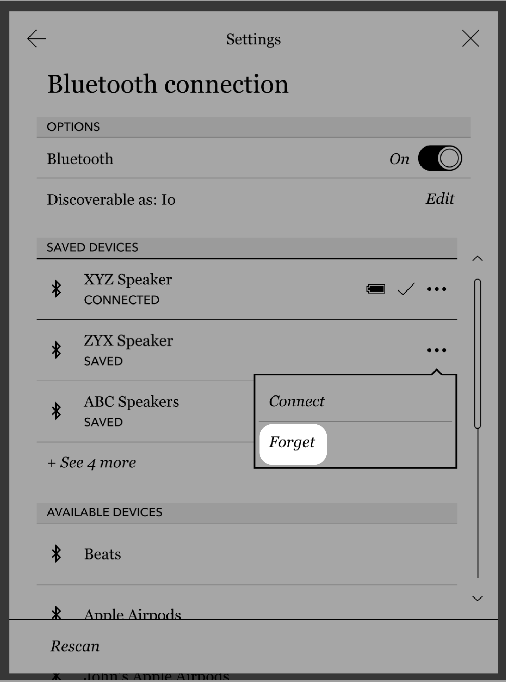 Søk etter tilgjengelige Bluetooth-enheter igjen på lesebrettet ditt