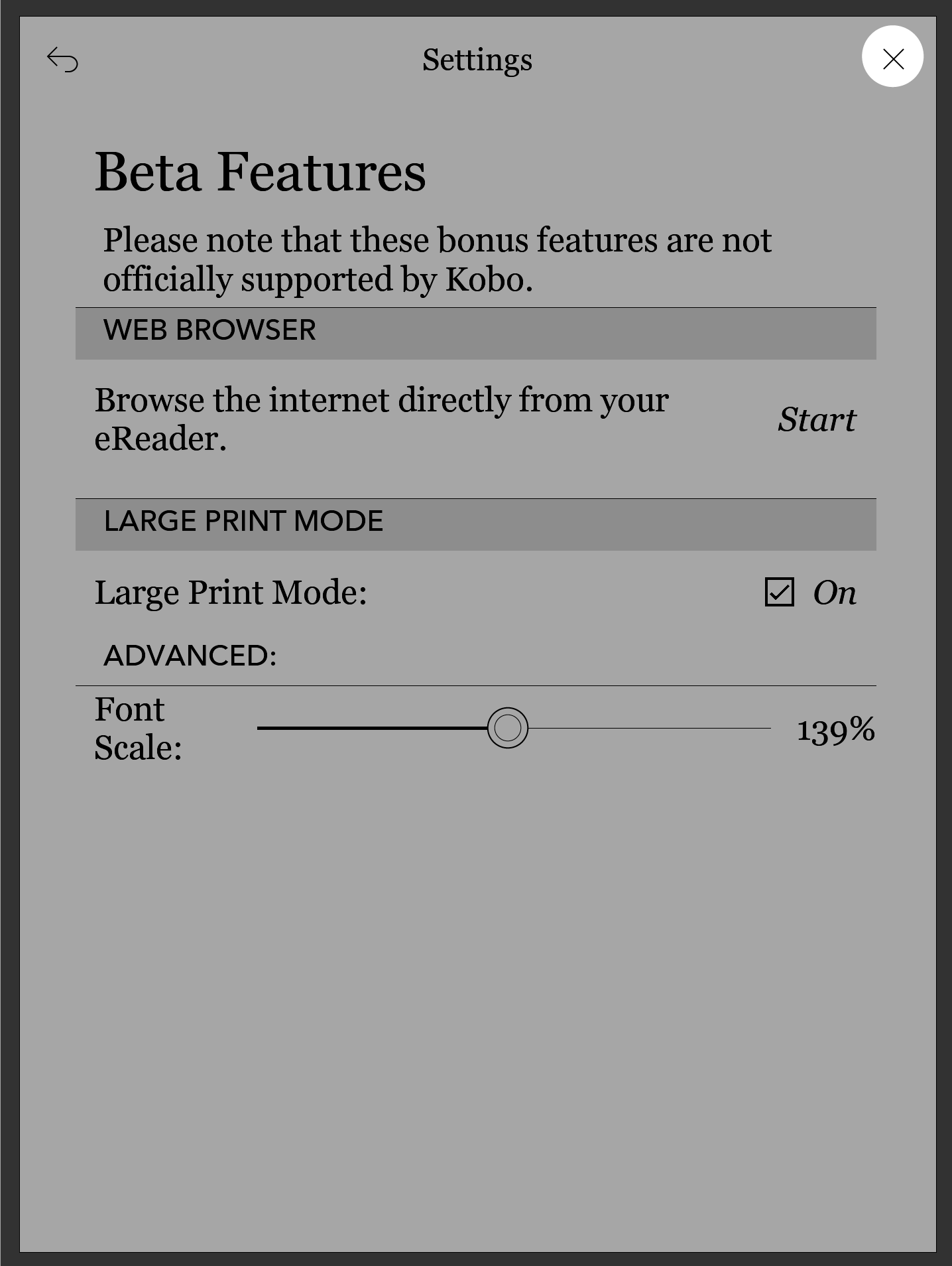 Ao lado de «Modo de Leitura Ampliada», toque na caixa de seleção junto a «Ligado».