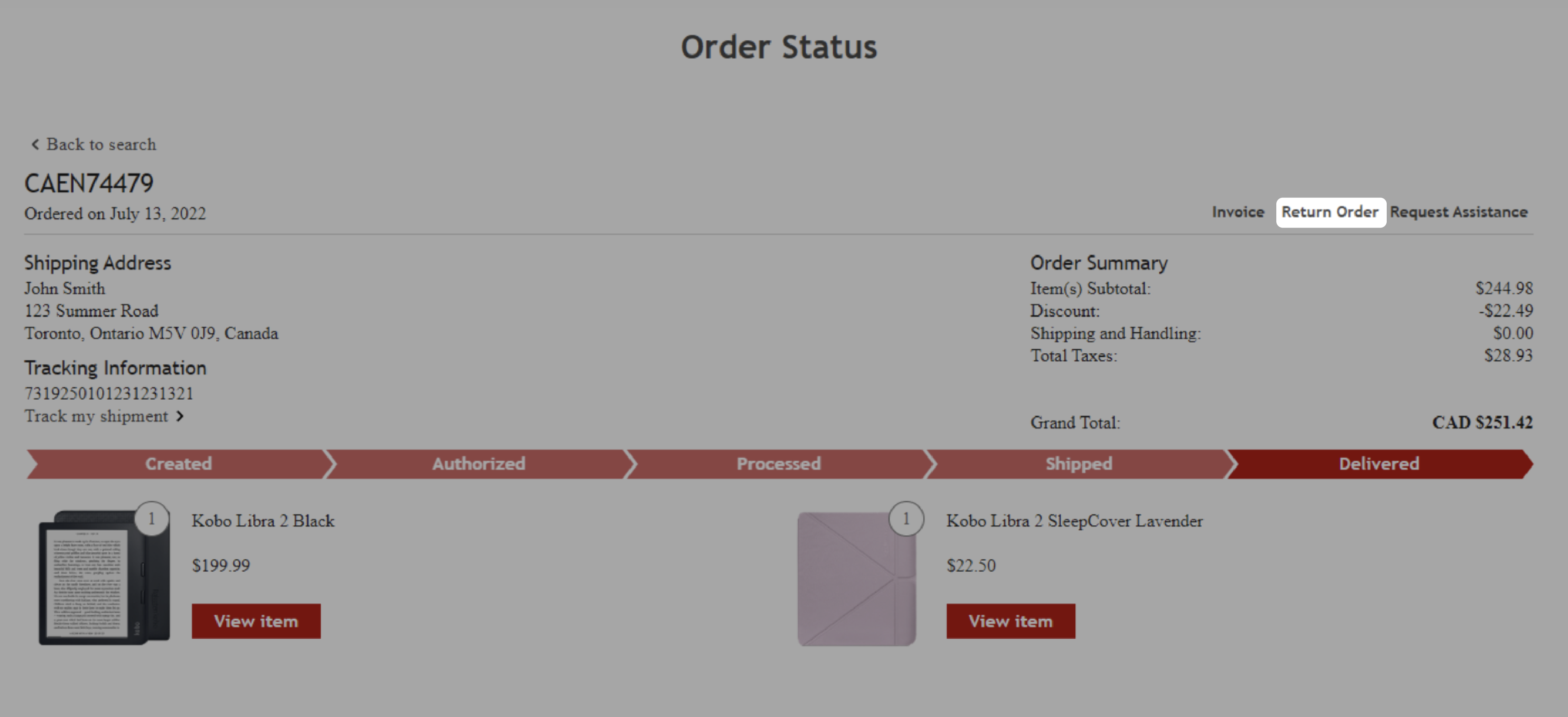 Pode cancelar itens que encomendou através do website kobo.com. Se mudar de ideias quanto à sua encomenda, pode cancelá-la facilmente no prazo de 8 horas sem ter de entrar em contacto com o nosso apoio ao cliente.
