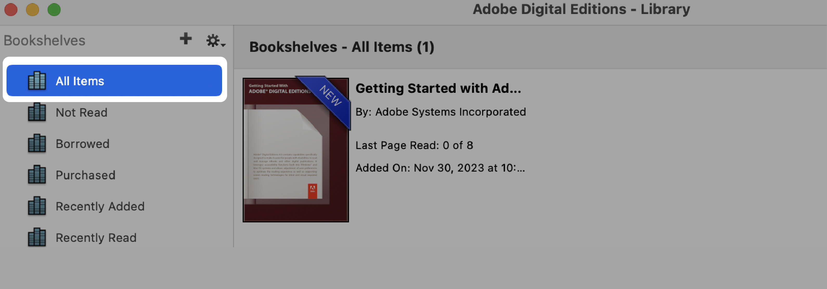.acsm-filen.Boken kommer att öppnas i ADE.